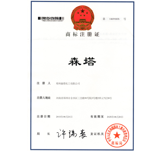 "森塔"商標(biāo)注冊(cè)證書(shū)